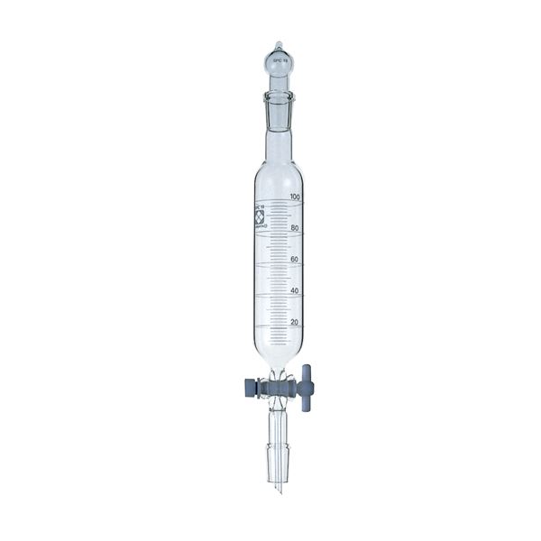 【柴田科学】SPC分液ロート 円筒形 PTFEコック付 目盛付 100mL 030270-19100