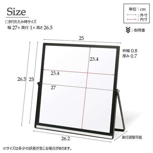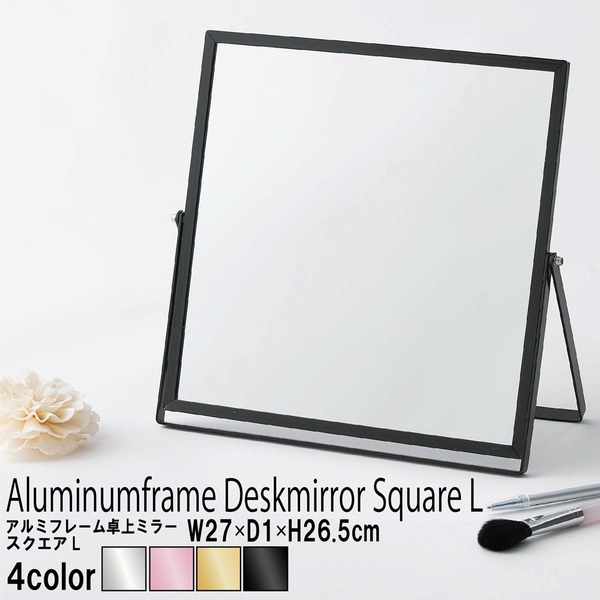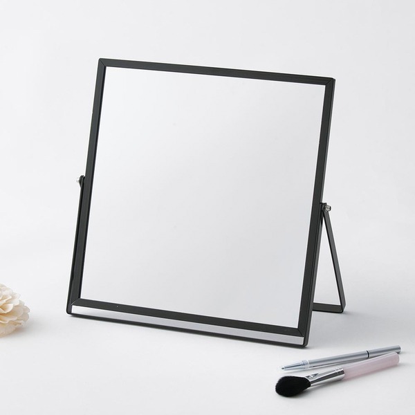 アルミフレームのシャープですっきりした印象の卓上ミラー
