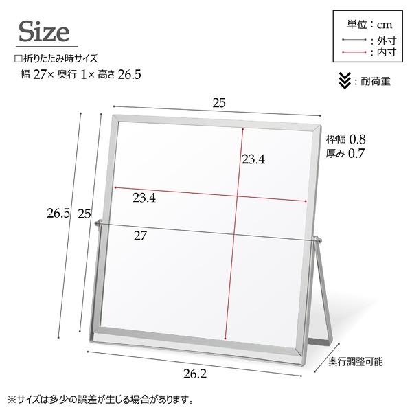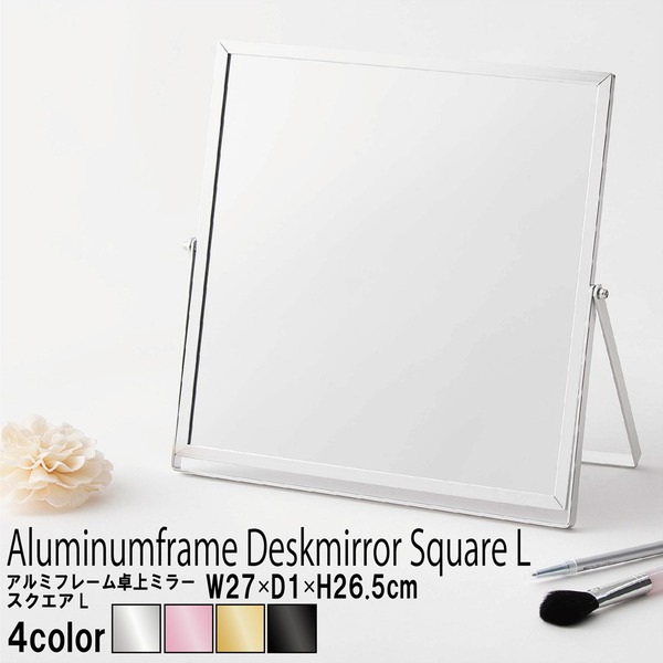 アルミフレームのシャープですっきりした印象の卓上ミラー