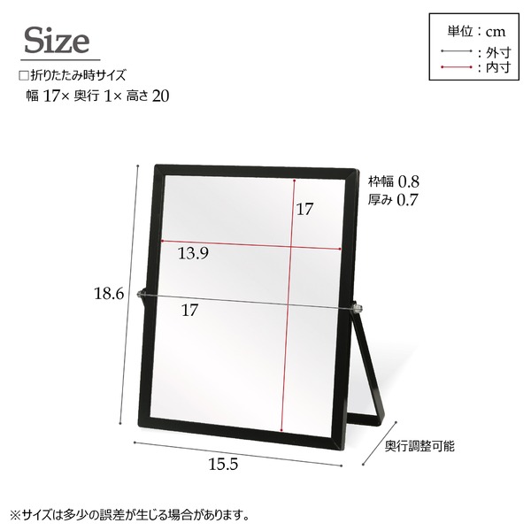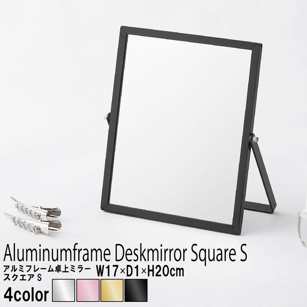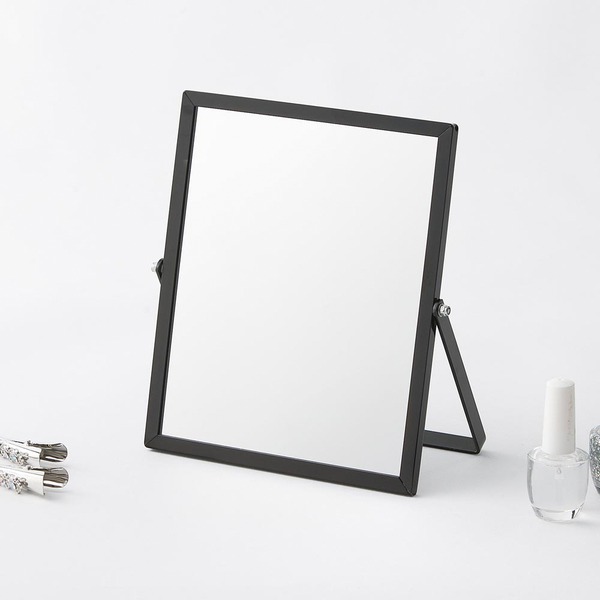 アルミフレームのシャープですっきりした印象の卓上ミラー