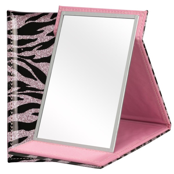 【24枚セット】フォールディング卓上ミラー(S/ゼブラピンク) 鏡/かがみ/コンパクトミラー/折りたたみ/メイク/スリム/ミニサイズ/アニマル柄/グリッター/飛散防止加工/業務用/完成品/NK-291
