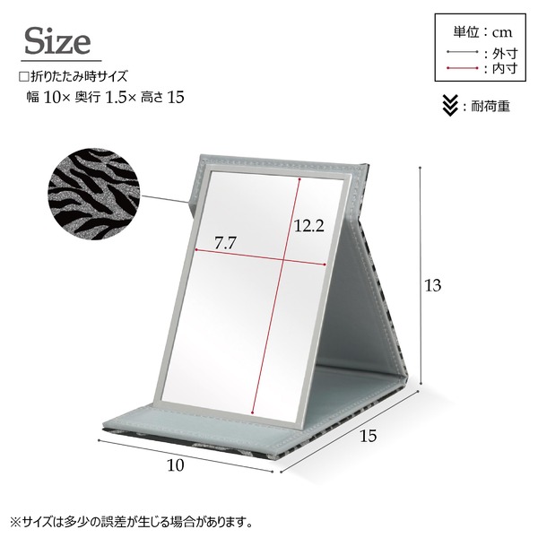 持ち運びに便利な折りたたみ式、外出時の化粧直しに便利です