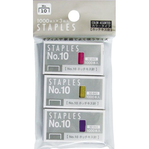 カラータイプホッチキス針No.10(3箱入) 【12個セット】 32-843