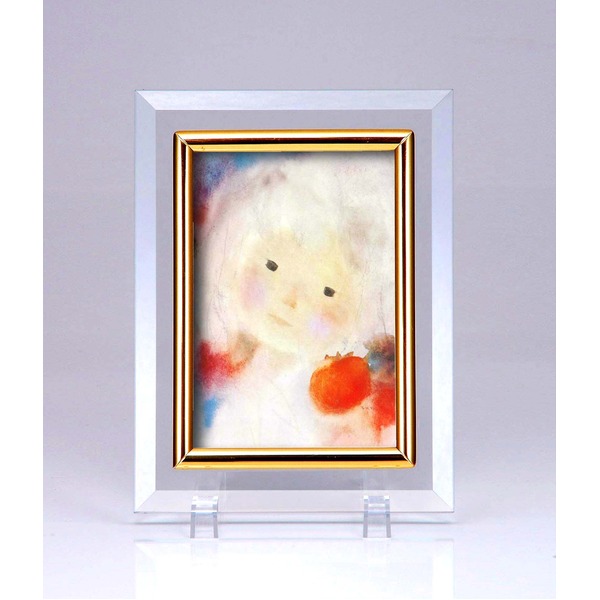 クリスタルフォトフレーム/写真立て 【ハガキサイズ 150×105mm対応】 いわさきちひろ 「柿を持つ少女」