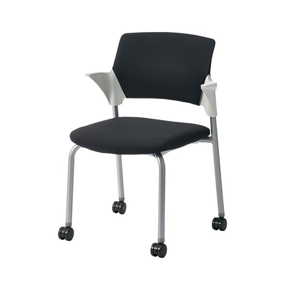 背や脚のバリエーションが豊富なスタッキングできるミーティングチェア/背パッド付キャスター脚/ブラック。背にはパッド付。肘はハーフ肘でカバンなどのちょっとした荷物を掛けられます。