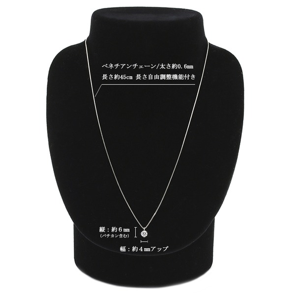 最初から高級な45cmの自由スライド調整機能付きベネチアンチェーン付きなので、首元のサイズが分からないプレゼント用としてもオススメできるジュエリーです。