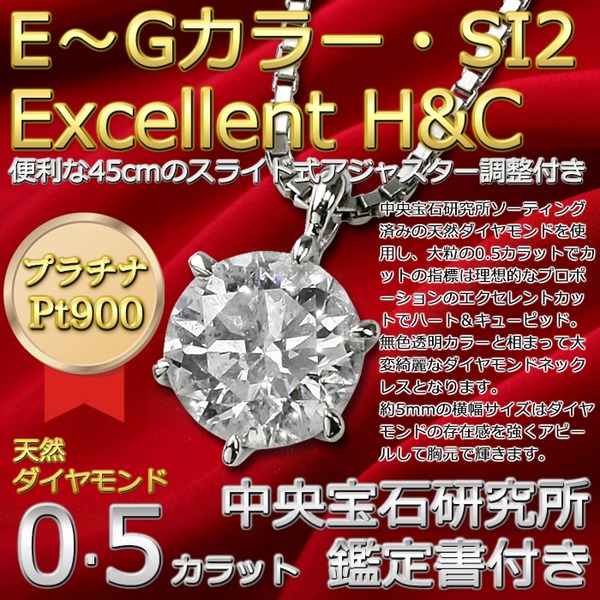 ダイヤモンド ネックレス 中央宝石研究所ソーティング済みダイヤモンド ジュエリー プチネックレス ペンダント 天然ダイヤモンド ダイアモンド ラウンドブリリアントカット プラチナ Pt900 アクセサリー 通販 Gカラー SIクラス Excellent 0.5ct ハート&キューピッド H&C H&Q 誕生日プレゼント 贈り物 母の日 クリスマスプレゼント 結婚記念日 結婚式 冠婚葬祭