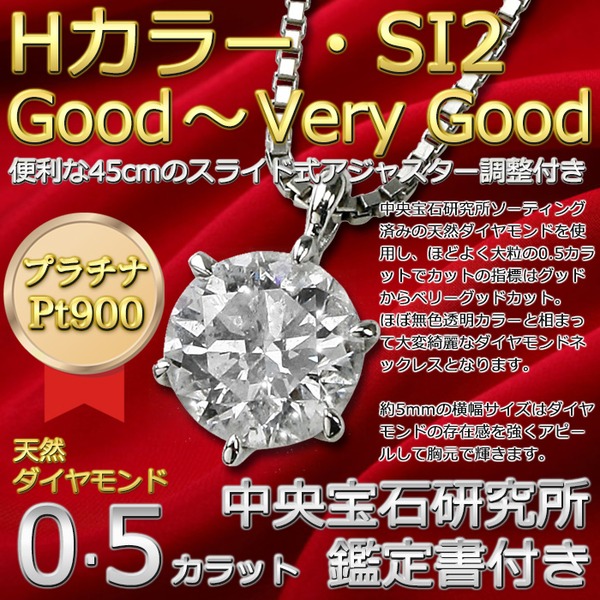 ダイヤモンド ネックレス 中央宝石研究所ソーティング済みダイヤモンド ジュエリー プチネックレス ペンダント 天然ダイヤモンド ダイアモンド ラウンドブリリアントカット プラチナ Pt900 アクセサリー 通販 Hカラー SIクラスGoodアップ 0.5ct 誕生日プレゼント 贈り物 母の日 クリスマスプレゼント 結婚記念日 結婚式 冠婚葬祭