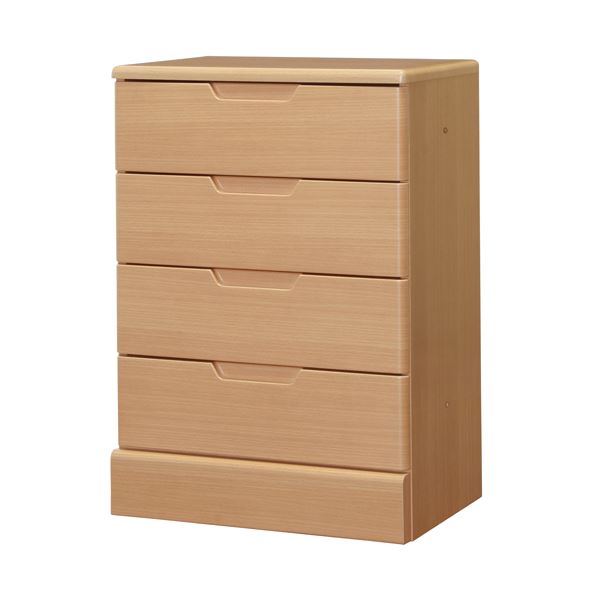 見た目の美しさと安全性にこだわったチトセ居室用家具シリーズ/チェスト。引出しがスムーズな「サスペンションレール付樹脂引出」。大きな丸みと継ぎ目のないエッジ。裏部には家電製品のコードを通すコードリブ付。