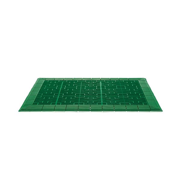 お手入れがラクな樹脂製の屋外用玄関マット「テラロイヤルマット」W900×D600mm/グリーン。鮮やかな若草色。マットは細かい網目となっていて、土砂や水がマットの下に落ちるので除塵効果が長持ちします。学校や店舗、公共施設など、さまざまなエントランスの屋外に使用できます。