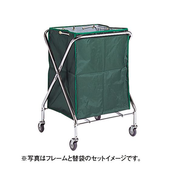 ゴミの回収・運搬に便利な折りたたみ式の大容量ダストカー、「BMダストカー」大フレーム用の替袋/大。落ち着いた渋めのグリーン。BMダストカーの本体フレーム大(146‐742)にセットしてお使いください。替袋の口は紐をしぼって閉じられます。移動がラクなキャスター付き。ゴミの回収用だけでなくオフィスや店舗、公共施設などでの荷物の運搬にも便利。また大きなオフィスでの郵便物の収集などにも、多様な用途にお使いいただけます。替袋の色で分別識別も可能。