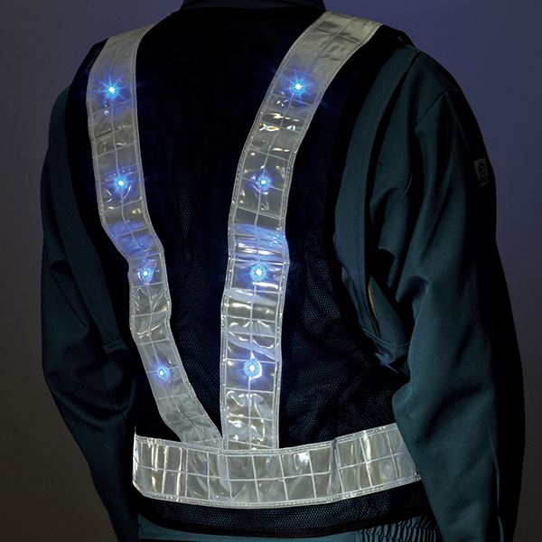 ■仕 様/反射帯60mm幅・LED前後各8個(計16個)・連続点滅の場合約70時間(単3電池3本使用)