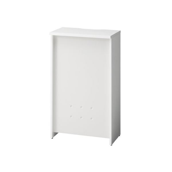 ホワイトカラーをベースとした清潔感ある「b‐Foret(ビーフォレット)」無人受付カウンターH1050/W600mm。幕板カラー/ホワイト。天板・側板は低圧メラミン化粧板、幕板はスチール製の木・金属を組み合わせたタイプのカウンターです。収納に便利な中棚付き(固定式)。幕板にはさりげないデザインを施してあります。
