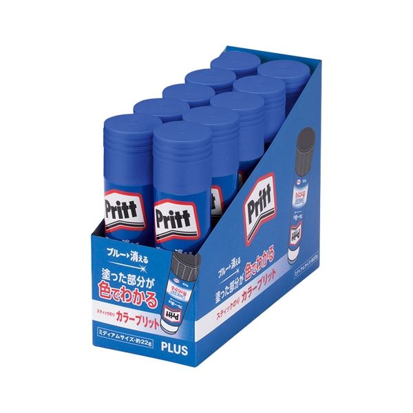 Prittスティックのり。塗った部分が見えて便利なカラータイプ。塗り残しやはみ出しを防止!テキパキ確実に作業したい人におすすめ。しばらくすると色は消えます。