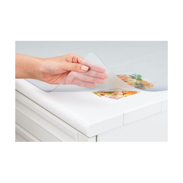 マウスが使えるデスクマット。特殊加工によりマット全体がマウスパッドとして使用できます。奥行が10cm短いので、コードインスペースのある机にも対応します。長時間の作業でも手が痛くなりにくい、斜めカット加工。