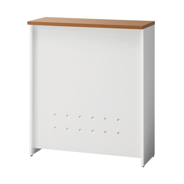 デスクシリーズ「b‐Foret(ビーフォレット)」ハイカウンターH1050/W900mmタイプ。天板ミディアムウッド×幕板ホワイト。天板・側板は低圧メラミン化粧板、幕板はスチール製で木と金属を組み合わせたタイプのカウンターです。便利な中棚付き(固定式)。A4サイズの縦型書類・ファイルが、立てても収納できます。中棚の中心位置には縦間仕切があるので整理整頓に便利です。同シリーズのローカウンター、ハイコーナーカウンターと連結して、幅広くレイアウトができます。