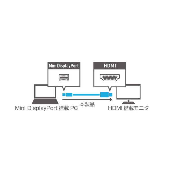 MiniDisplayPort(Thunderbolt)端子をHDMIに変換するケーブルです。
