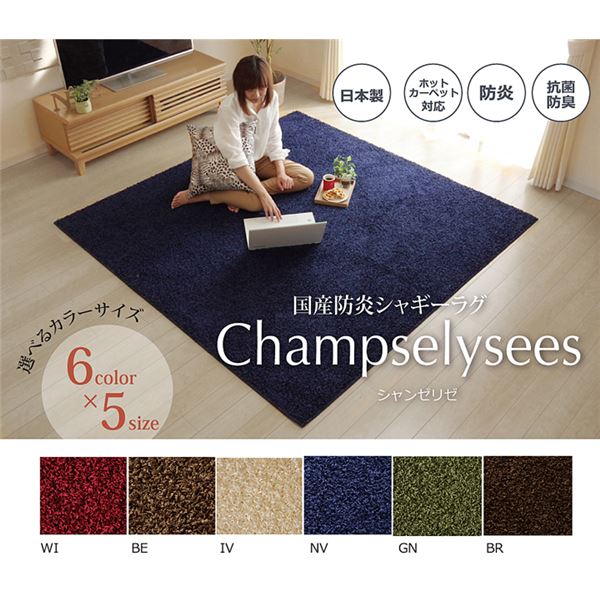 安心の日本製タフトシャギーラグです。多色多サイズ展開、お部屋に合わせてお選び下さい。基布と裏地を貼り合わせる接着剤に防炎の薬剤を混ぜて防炎加工を施しています。防炎性能を有する防炎品は火災の初期段階では火災の発生を抑止し、延焼拡大を抑制または阻止する効果があります。また、防炎効果により火災の成長を抑制抑制することで、初期消火や避難などの火災対応を行う貴重な時間的余裕をもたらします。基布には抗菌・防臭・防ダニ加工を施しておりますので、お子様にも安心です。パイル長約25mmのシャギータイプです。適度な長さでふかふかとした肌触りです。パイル部分にはフリーゼセット加工を施しており、くしゅくしゅっとした表面変化(立体感)とボリュームを出しています。また、若干の光沢をプラスするとことで、少し大人な高級感を出しました。ホットカーペット、床暖房対応でパイル部分もさらっとしていますのでべとつかず暑い時期にもご使用頂ける、オールシーズン仕様です。