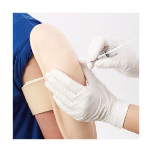 ・腕の肩からひじまでが表皮におおわれており、筋肉注射と皮下注射の実習ができます。