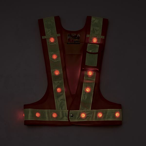 多機能LEDベスト 多機能LEDベスト-YY-R (メッシュ部:黄・反射部:黄・LED発光色:赤)【代引不可】