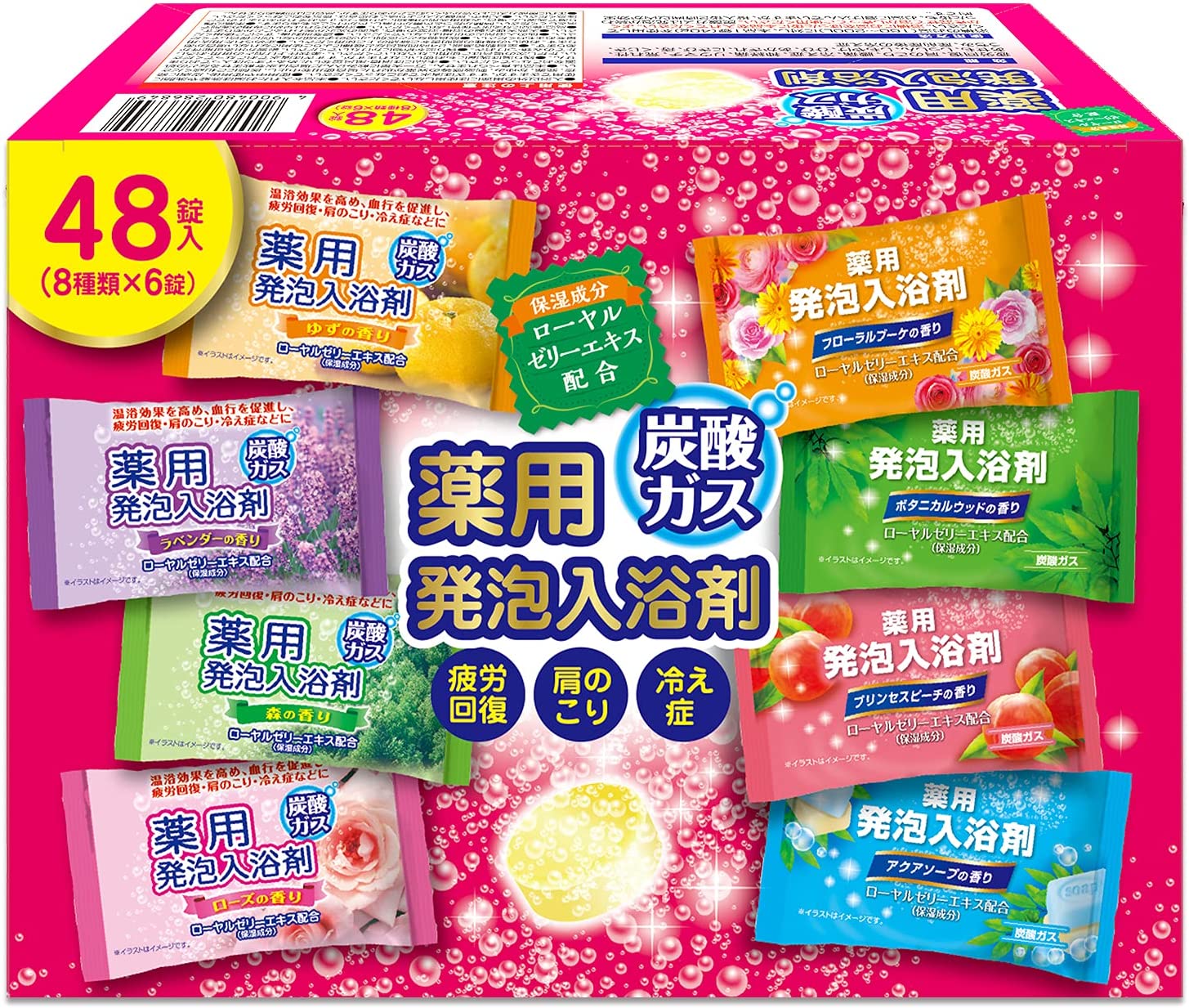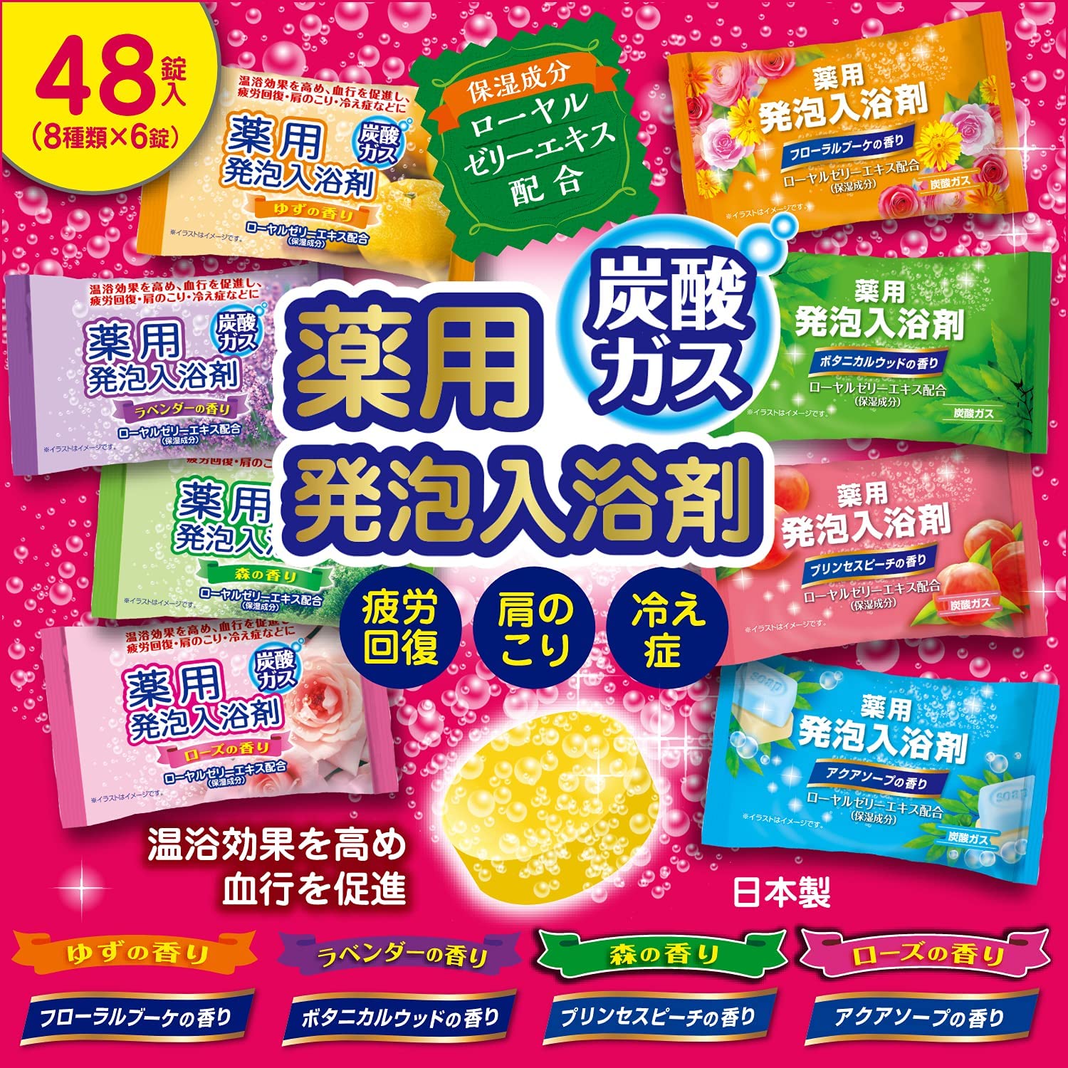 大容量薬用発泡 入浴剤 8つの香り 炭酸 ガス 48錠入(8種6錠) 詰め合わせ 疲労回復 肩こり 冷え性 ギフト 医薬部外品