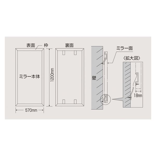 ※壁面へ取り付けた際、ミラーと壁にすきまは出来ません。