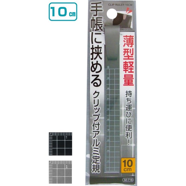 手帳に便利!薄型クリップ付10cmメタルカラーアルミ定規 【12個セット】 32-718