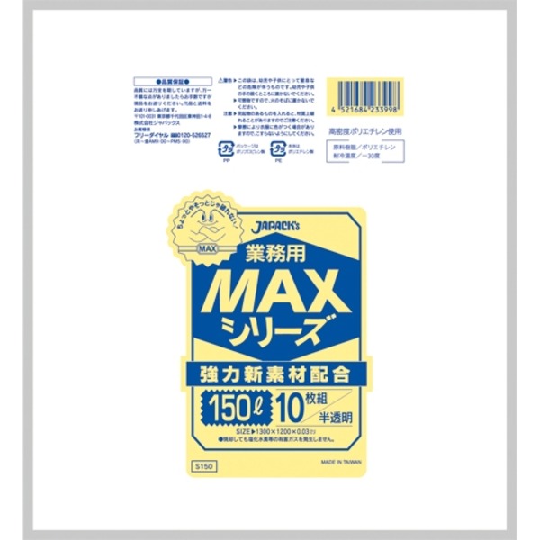 破れにくい、強力新素材配合の業務用ゴミ袋「MAX」。