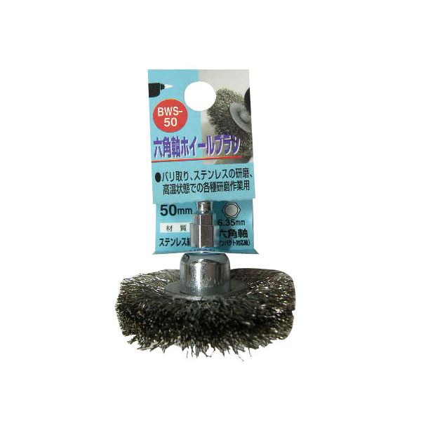 (業務用2個セット) H&H 六角軸ホイールブラシ/先端工具 【研磨作業用/50mm】 ステンレス線 日本製 BWS-50 〔DIY用品/大工道具〕