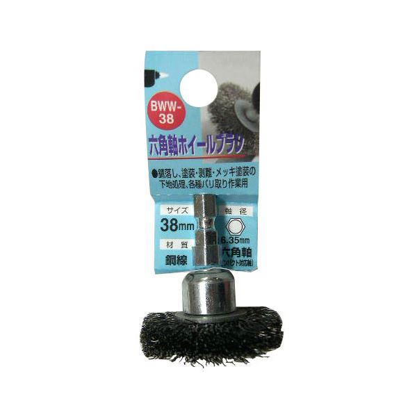 (業務用25個セット) H&H 六角軸ホイールブラシ/先端工具 【バリ取り作業用/38mm】 鋼線 日本製 BWW-38 〔DIY用品/大工道具〕