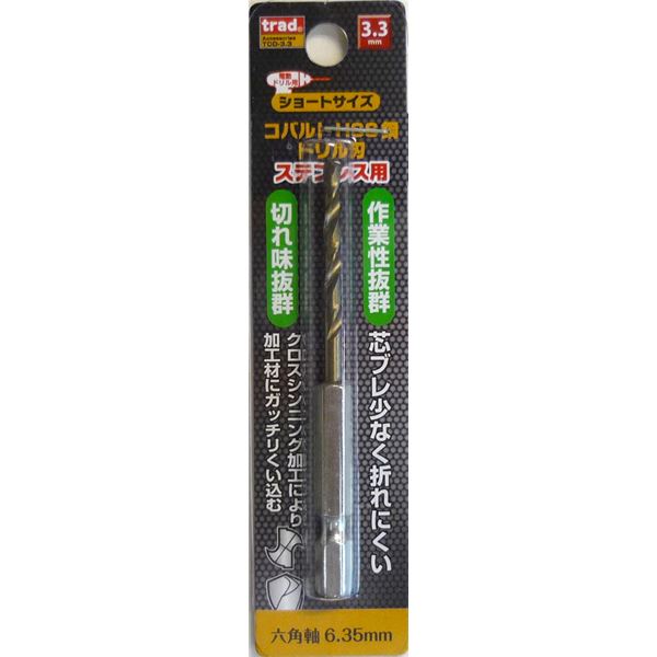 作業性抜群、芯ブレ少なく折れにくい。切れ味抜群、クロスシンニング加工により加工材にガッチリくい込む。切削開始時の食いつきが良くなり、少ない力で穴あけ作業が出来ます。適応機種 電気ドリル・充電式ドリル・ボール盤
