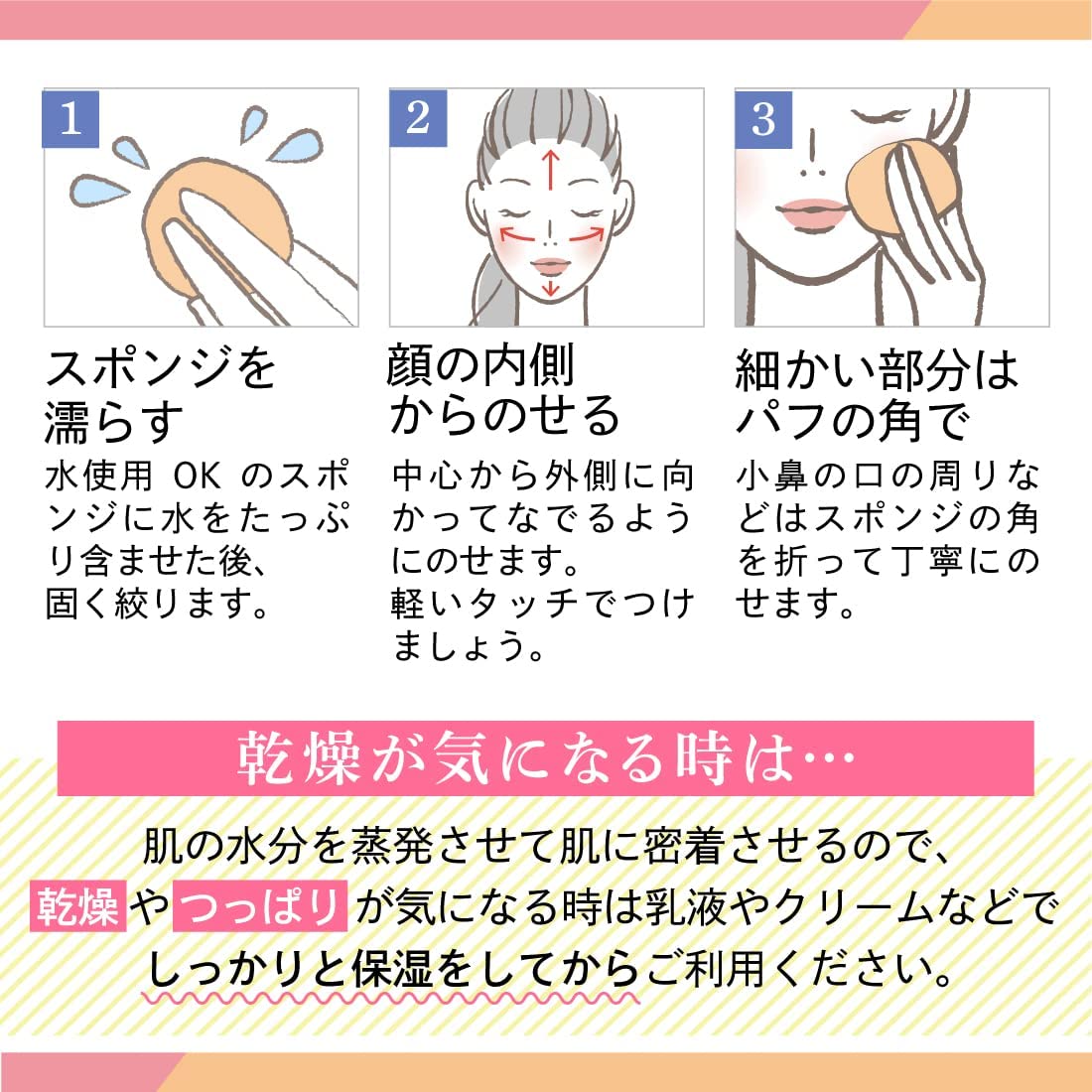 - 【 水使用のファンデーションとは 】スポンジに水を含ませて使うファンデーション。肌に乗せたあとは、水分が蒸発することでぴたっと密着します。