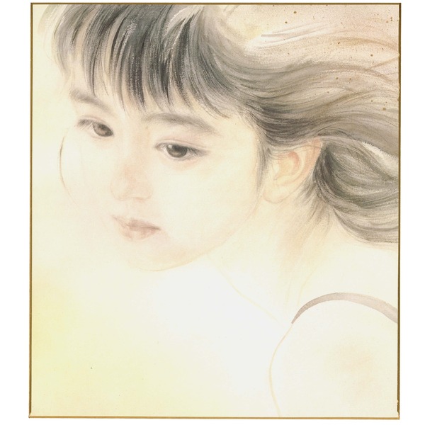 淡く抒情豊かな水彩画で優しく描かれた慶文の可愛らしい絵をセットした色紙額。