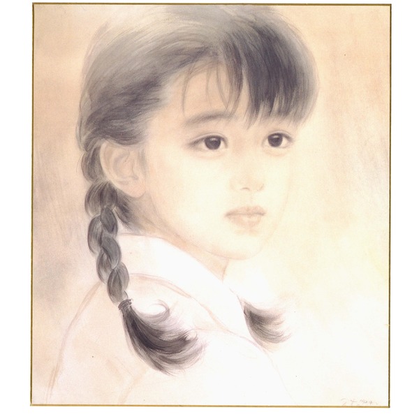 淡く抒情豊かな水彩画で優しく描かれた慶文の可愛らしい絵をセットした色紙額。