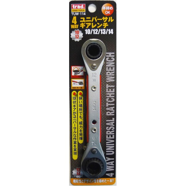 対応サイズ10/12/13/14mm。球状ギアがユニバーサルな作業を実現。首振り角15°で狭い箇所や回しにくいフラットな箇所でも作業が出来ます。本締め可能。!